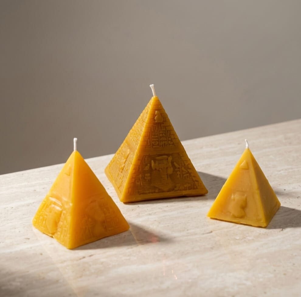 Doğal balmumundan el işçiliğiyle üretilmiş Piramit Mum Seti, mistik enerjisi ve zarif tasarımıyla hem şık bir dekoratif obje hem de anlamlı bir hediye seçeneğidir. Set içerisinde 3 farklı boy piramit mum yer alır.