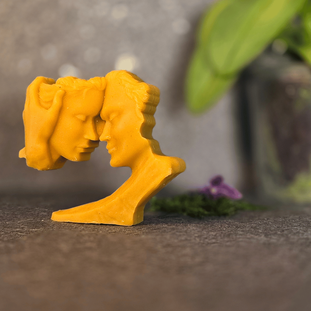 Sevginin en saf hâlini temsil eden bu özel tasarım balmumu mum, iki başın buluşmasını ve kalplerin aynı ritimde atışını simgeliyor. Doğal balmumundan tamamen elde üretilmiştir ve size sadece bir mum değil, aynı zamanda bir hikâye getirir.